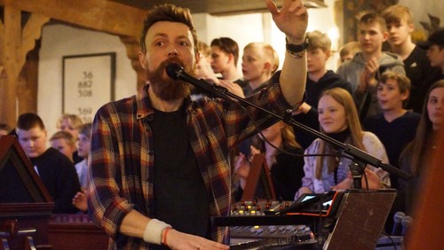 Advent er en glædelig tid. Og glæden får lov til at strømme frit, når vi blænder op for årets store gospelfest mellem gran og udsigten til Jesu fødsel. Hele dagen har konfirmander og præster øvet numre med musikeren og produceren Joachim Hejslet.